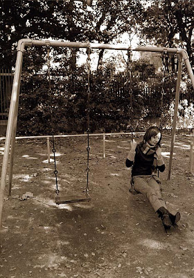 Что-то в ней такое загадочно-романтичное. Напомнило мне сцену из "Чобитов" когда Симбо встречает свою учительницу сидящей на таких же вот качелях... Правда там у нее вид был грустнее...