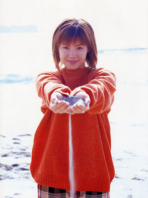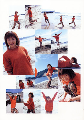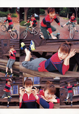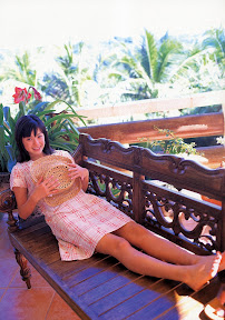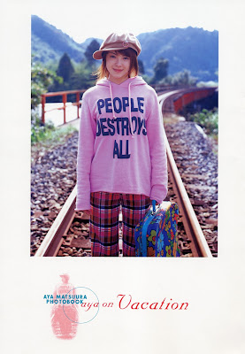 А вот эта фотография заставляет меня сначало расслабиться, а потом мысли, порожденные недавней расслабленностью , заставляют вернуться к суровой реальности.Вообще, мне не нравится цвет ее волос здесь... точнее, не нравится его сочетание с общим фоном. Ну а в общем, если даже не брать в рассчет Айу, представить что ее нет на этой фотографии - картина радует глаз: начинаешь погружаться в эту атмосферу, представлять, что это ты лежишь на скамейке и, с одной стороны, ты находишься в теньке и тебе не жарко, но ноги твои обнажены для нежных солнечных лучей, которые, едва касаясь кожи создают приятное ощущение, помогая расслабиться, забыть обо всем и наслаждаться окружающей обстановкой...
