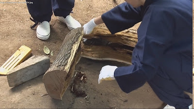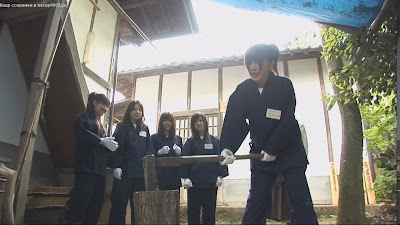 А за всем этим наблюдал человек старшего возраста, в то время как вокруг и так полно было нарубленных деревяшек ...