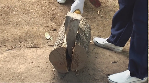 В конце концов бревно удалось расколоть ...