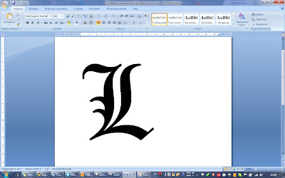 Сегодня я совершенно случайно узнал что отображения буквы L как в Death Note (ну или очень похожую) можно добиться, если применить к обычной букве L шрифт Old English Text MT