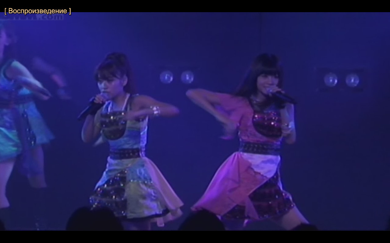 Вот самое замечательное представление этого стейджа! Какой-то пьяный вота с задних рядов стал вопить признания в любви Харуночке, тем самым прервав ее аригатогозаймасы, оба из которых толком произнести не получилось. На этот момент показалась настоящая Харуна и было приятно взглянуть на хоть какие-то неотрепетированные эмоции. Надеюсь, вопли этого чувака хотя бы не по сценарию были.